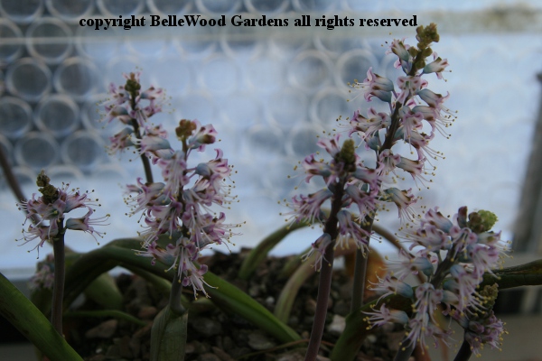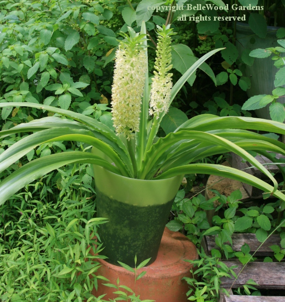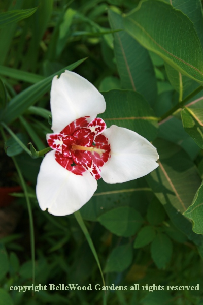 Red flowered form of the tiger flower, Tigridia pavonia 'Rubra'. I meant to repot Eucomis pole-evansii this year. But it insisted