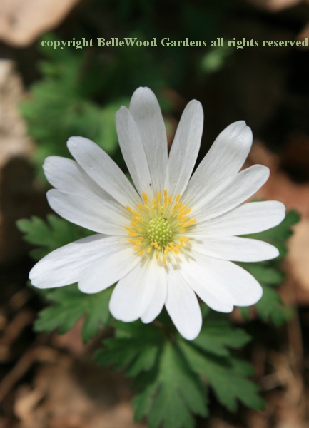 to the pristine white flowers Anemone blanda 'White Splendour'