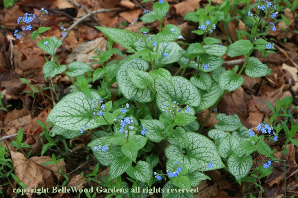 Brunnera 'Jack Frost' has silvery leaves netted with green.