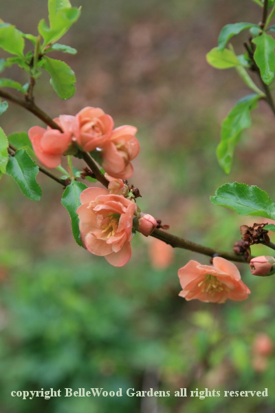 Shrubs are flowering too. Cydonia 'Cameo' has