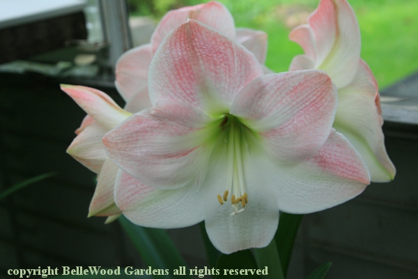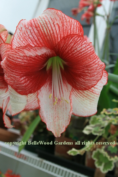 This year May is somewhat on the cool side. Still keeping some plants in the greenhouse. Some of the Hippeastrum are determined to bloom. Now! So 'Charisma' is doing its thing. I've had it for years and years. .