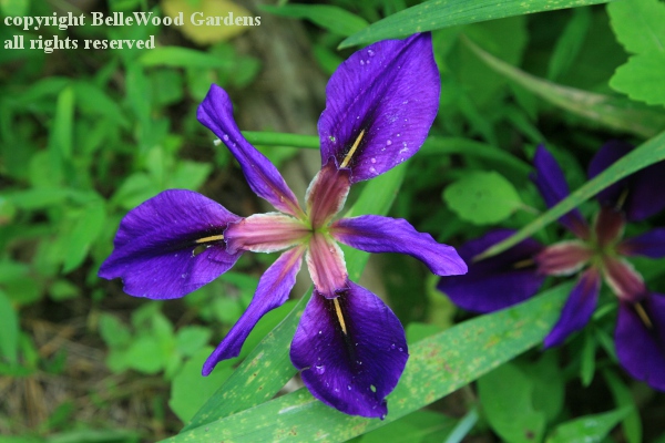 Iris 'Black Gamecock' has rich, velvety purple petals and a streak