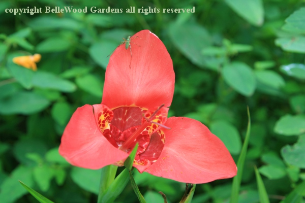 The red tigridia are not all exactly the same shade of red. Ditto for the yellow ones. And the amount of red speckling is