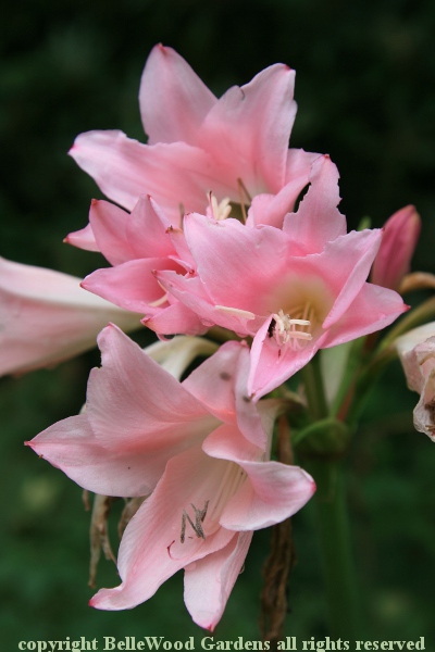 What most people call "amaryllis" is not. Those bulbs with huge showy flowers around Christmas time are more accurately given the Latin name of Hippeastrum. There is a bulb correctly named Amaryllis belladona. Originally from the Cape region of South Africa, very happy in southern California. This is a hybrid of the true amaryllis and a crinum, so it's proper Latin name is ×Amarcrinum.