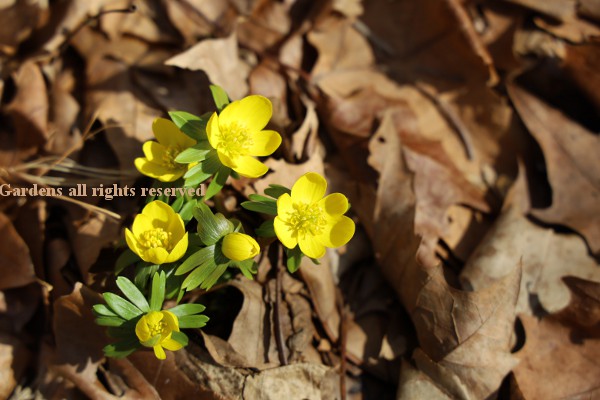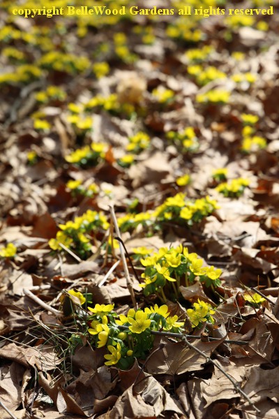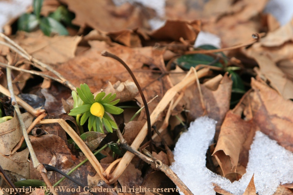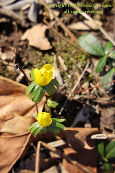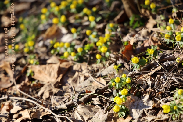 are a few lonely little winter aconites, Eranthis hiemalis, one here, one there.
