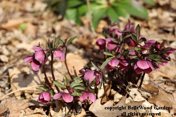 Charming overall, and well worth a close up look too. I have several of the more often seen white, and one pink star magnolia. It is a little slower into bloom, by about a day. Wonderful year for magnolias. The earlier, sessile trillium are also up and out. Just see this colony of Trillium cuneatum. Helleborus niger is also making quite a show. The bees are enjoying it too. Sunday, 7 April 2019 A lovely group of Jeffersonia dubia. Lots of little one or two flowered offspring,