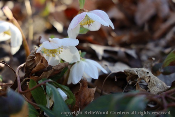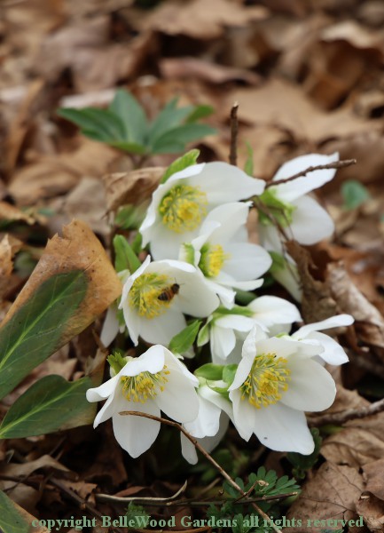 Pristine white flowers of Helleborus niger still looking marvellous.