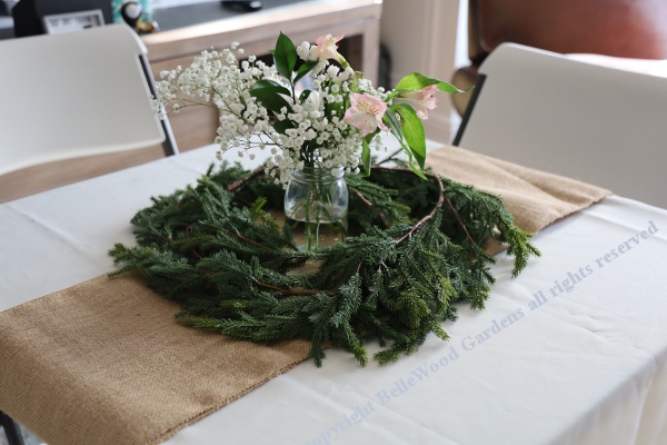 twining greenery, casual bouquets, and candles (that are artificial, not living flames.)