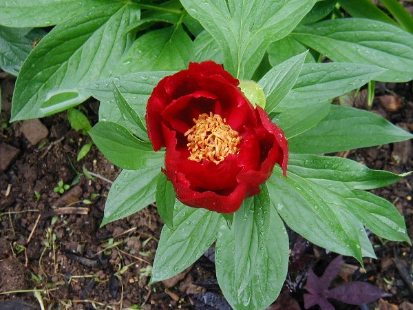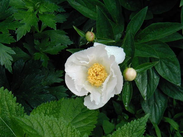 Peonies are, to my way of thinking, among the most perfect of perennials. Extremely long lived, 50 years or more. Stunning flowers, clean tidy foliage, and well-behaved in the garden. There are a couple of considerations: plant any more deeply than an inch or two and the plants will grow but not flower. And a very wet spring can result in botrytis, a scuzzy, fuzzy gray mold that damages the young shoots and flower buds. Fungal spores survive freezing, boiling, submersion in formaldehyde, and for those reasons spent peony foliage does not go into the compost heap at season's end, lest a reservoir of infection be created. Double peony flowers are stunning, but act as blotting paper when it rains. Careful support is needed to keep them upright. For that reason I grow singles and anemone-flowered cultivars that stand up to the weather on their own.