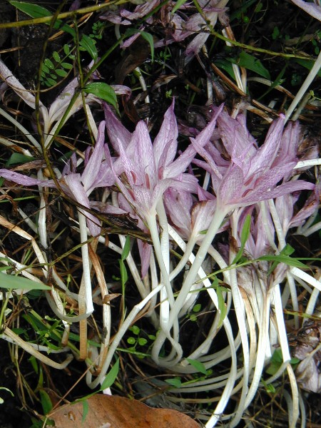 colchicum remain open. Count the stamens. Crocus have but three, while colchicum have six.