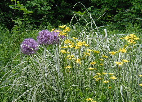 that make a fine accent with a variegated miscanthus grass as its partner.