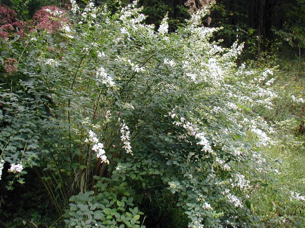 Every year when the Japanese bush clover, Lespedeza thunbergii, come into their September display I wonder why this shrub is not more widely grown. Perhaps it is its growth habit, requiring an annual cutting back in spring before new growth begins. If you think about it though, isn't this easier? A simple whacking back of each shoot to a short woody stub a few inches tall, rather than a complicated decision of where to prune what, and when to do it. By summer's end each shrub has grown back to a fountaining mound about 5 feet tall, well decorated with flowers. Deer may take a spring-time nibble, but not every year. besides, it is only anouther bit of pruning.