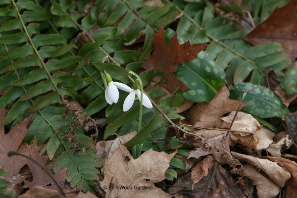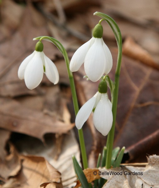 from G. nivalis, the common snowdrop more frequently seen in gardens.
