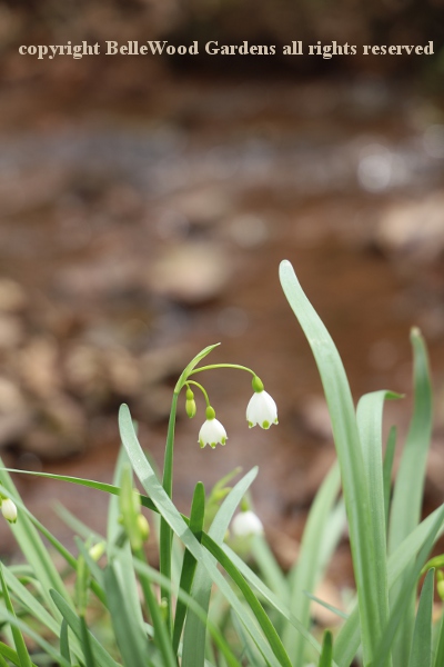 trio of Galanthus nivalis 'Magnet' with their long drooping petals.