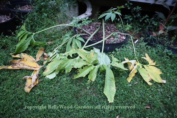 The summer has turned quite dry. Whereas Sauromatum had earlier developed huge leaves