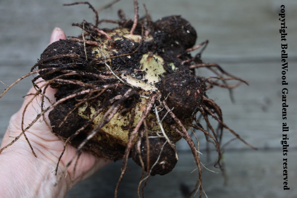 growing point. Once dug, there are numerous offsets to be seen. Dried off,