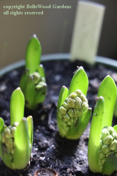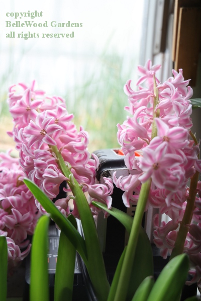Now it is mid-March and they are in flower. Their fragrance is noticeable as soon as I enter the garage.