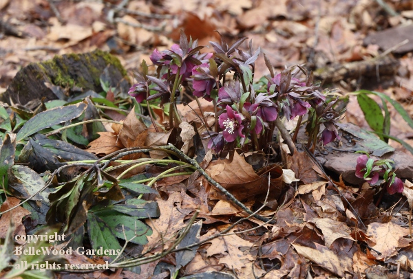 Hellebores. I am especially fond of Helleborus Early Purple Group, with their rich burgundy purple flowers