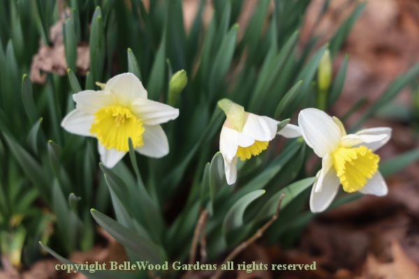 Not all daffodils are stately trumpets. These daintier, more modest size flowers are Narcissus 'Mustard Seed'.