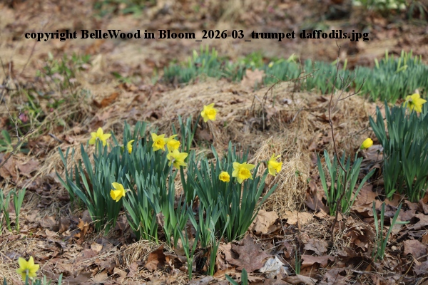 The welcome golden flowers of trumpet daffodils present their sunny flowers to welcome Spring.
