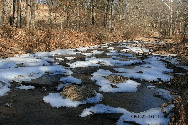 Layers of ice crystals cluster on the Nishisakiwick Creek, needles of ice