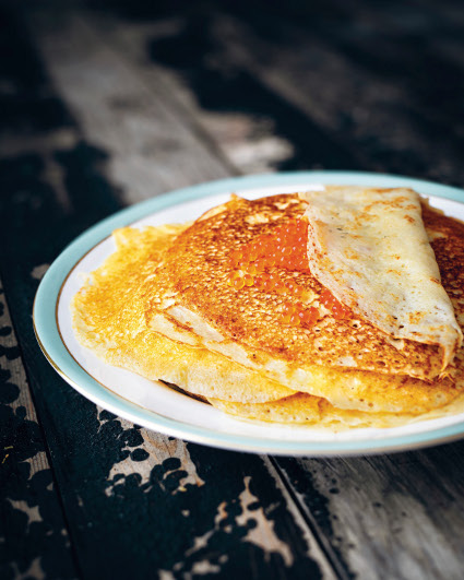 As an aside - think about the Russian climate with a relatively short growing season and a long dark winter. Recipes for pickles - 3-day salted cabbage, ready much sooner than lacto-fermented saurkraut. Cucumber pickles from half-sour dill to sweet and sour to a 20-minute version with salt, dill, garlic, and vodka. Vodkas flavored with pepper, or horseradish or birch buds. A dandelion flower syrup. Berries from blueberries to cranberries, currants, raspberries and sea buckthorn. Dairy features prominently. Farmer's cheese, make your own and then use it in pancakes. Varenets, baked cultured milk. You really need to read the recipe to understand what it is.