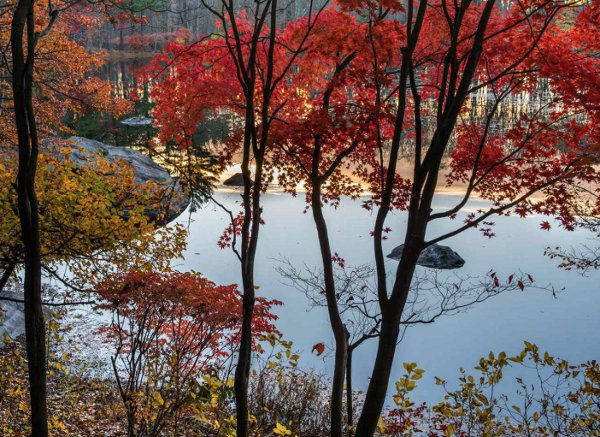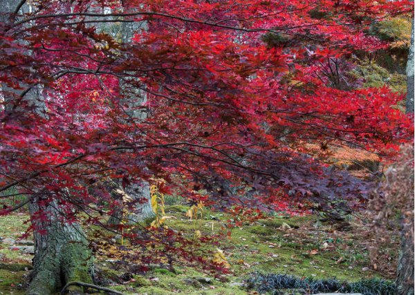 Here, the diverse Japanese maples ablaze autumn's fiery colors