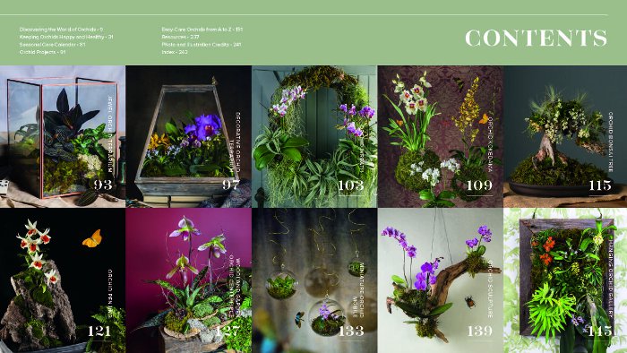 But there is more. Ten elegant orchid projects offer options beyond growing in a simple pot. Consider an orchid bonsai tree, a woodland garden orchid centerpiece, a hanging orchid gallery, and more.