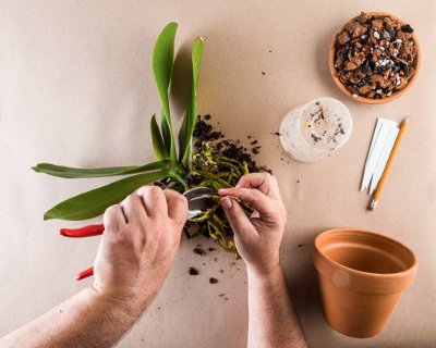 careful step-by-step photographs pair with how-to-do directions about caring for orchids.