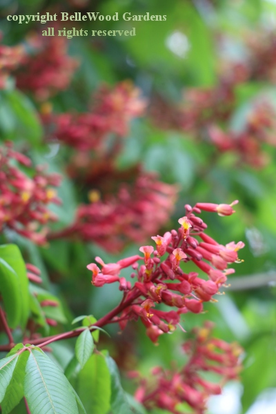 Looking like a tree lit with red candles, this red buckeye, Aesculus pavia, is