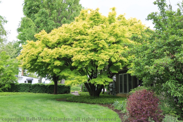 golden Japanese maple just ahead. Its leaves have that wonderful tender spring color.