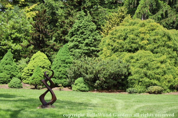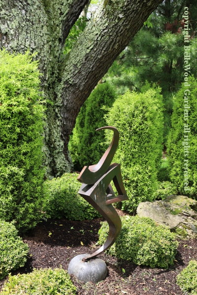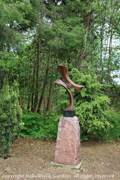 The header that describes the Gardens at Half Moon for the Garden Conservancy's Open Days directory makes notice of "Rare plants/plant collection, Garden structure/sculpture." I don't really remember any sculpture. That's because it wasn't here when I had previously been here. As we traverse the grounds on the ever so quiet electric golf cart, stopping and / or reversing direction as necessary so Ridge can answer questions and direct people where to see some special plants, he mentions that there had been an event, an arts festival.
