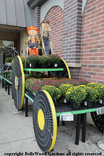 A cart of potted chrysanthemums for sale at Wal-Mart. I was especially