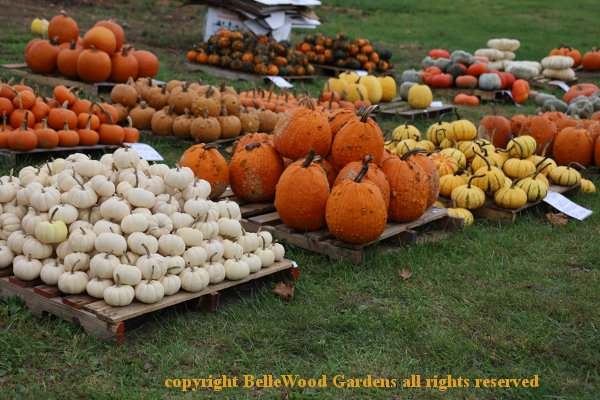 So many pumpkins! Pallets heaped high. Big ones. Little ones. Rounded. Flattened.