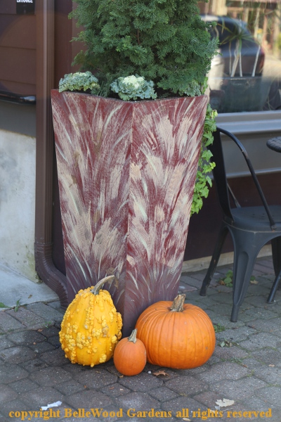 Set pumpkins out, right on the street, as seasonal embellishments by a planter.