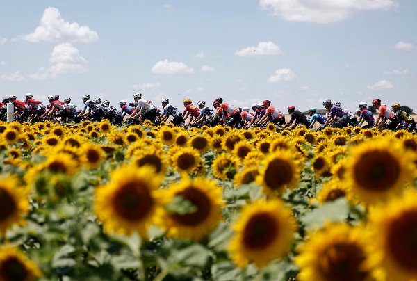 The summer continues to present sunflowers. Here, stage 4 of the Tour de France on Tuesday, 8 July