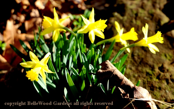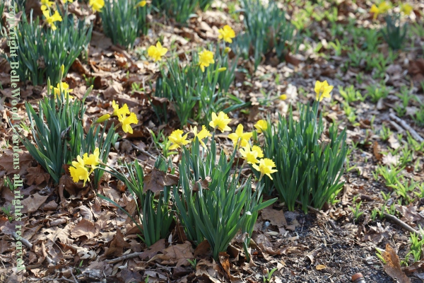 Not all daffodils are stately trumpets. These daintier, more modest size flowers are Narcissus 'Mustard Seed'.