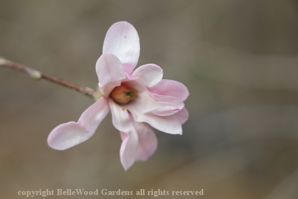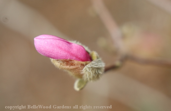 The pink star magnolia, Magnolia stellata 'Rosea' has hurried into bloom, encouraged by temperatures