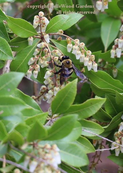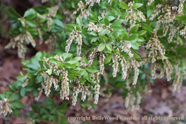 Lily-of-the-valley shrub, Pieris japonica, is in bloom. It is the Japanese "cousin" of